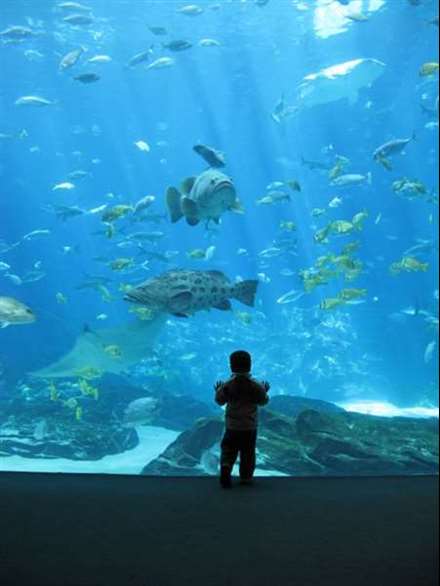 Acvariul Georgia, localizat în Atlanta, statul Georgia, USA, este cel mai mare acvariu din lume cu peste 32 milioane litrii de apă marină şi apă dulce, găzduind peste 120.000 de animale din peste 500 de specii. Printre speciile importante, în acvariul Georgia se găsesc 4 balene rechin, 4 balene Beluga şi 4 pisici de mare Manta.